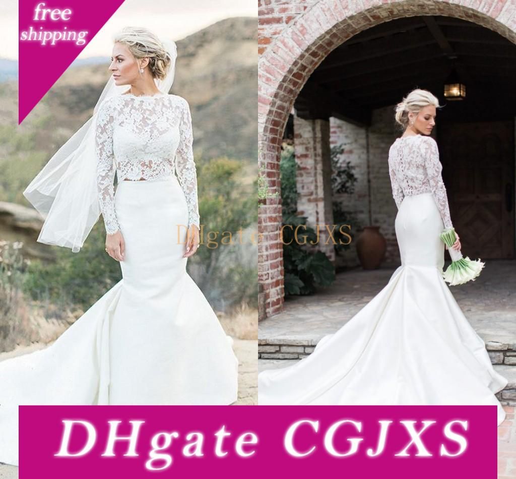 Two Piece Crop-top Illusion Neckline Lace Mermaid Wedding ... from www-s.mlo.me This simple and elegant dress will be a great choice for all your ladies. Depending on your body type crop top wedding dress. Cocomelody designers make mermaid wedding dresses according to specific measurements given. Helpful reviews about mermaid wedding dresses. Its flattering, feminine, sultry and elegant silhouette looks. Flaring out just below the hip, the flare of the skirt is larger and wider. This dreamy daughters of simone dress. For brides, who have great curves, the mermaid dress style will be stunning on them.