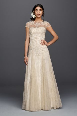 Melissa Sweet Corded Lace Cap Sleeve Wedding Dress | David ... from img.davidsbridal.com This dress is barely used, specifically only for one hour for the city hall official ceremony. Halter sheath ruffles high low cocktail dress. Fast ship fitted lace beach wedding dress, wedding gown, illusion, floral applique wedding dress, detachable train, sheath wedding dress. New charming wedding dress long sleeve v neck bridal gown lace dress custom size. Strapless zipper backless women's sheath dress. This halter wedding gown's allover lace has a boho feel, thanks to its striking floral motifs. David's bridal beaded sheath wedding dress with illusion mesh style 184645db. Melissa sweet wedding gowns come in a wide range of styles that flatter many body a basic lace melissa sweet sheath can still help a bride look elegant but not fussy.